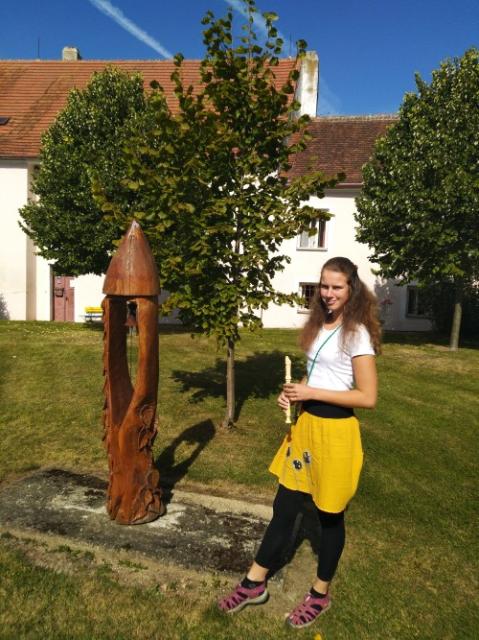 Další část programu s klavírním vystoupením se odehrála na nádvoří u kašny s Nežárkou. Zde Karel Huněk také vystavil heraldiku Řádu duševních rytířů modré růže.